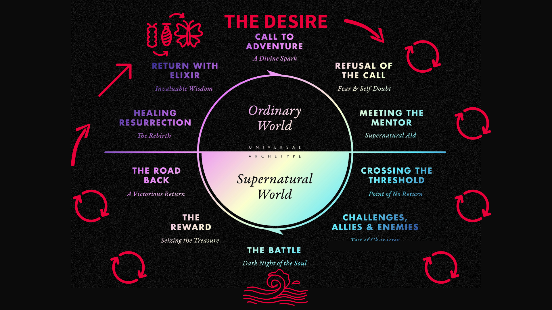 The original desire that starts the loop is often good- it's the catalyst for our growth. It's the call to adventure (like in The Hero's Journey, see below), it gets us to move.